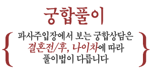 »ó´ã¿¡¼­µµ ÀÚÁÖ ÀÌ¿ëµÇ´Â ºÎºÐÀ̱äÇÏÁö¸¸ ÀÌ´Â ´Ü¼øÈ÷ ±ÃÇÕÁöħǥ¿¡ Áö³ªÁö ¾Ê½À´Ï´Ù. »çÁÖ»ó¿¡¼­´Â Á¤È®ÇÑ ±ÃÇÕ»ó´ãÀº ³²³àÀÇ »ý³â¿ùÀÏ »çÁÖÆÈÀÚÀÇ ¼º°ÝƯ¡À» ÆÄ»çÁÖÀÇ ±æ¿¬/¾Ç¿¬ÀÇ ÀÔÀå¿¡¼­ ÀçÇØ¼®ÇÏ¿© Ç®ÀÌÇϴ°ÍÀ» ¿øÄ¢À¸·Î ÇÕ´Ï´Ù.